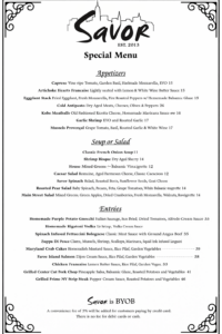 Savor is an Italian and American cuisine restaurant that has happily served thousands of great people just like you. No matter what the occasion or celebration, Savor has you covered. Savor has won the prestigious #1 BYOB finest dining restaurant in all of Somerville, New Jersey. Come and see for yourself why Savor is the people’s choice for fine dining. “Everyone loves to cater at Savor”